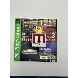 This is Namco Museum Volume 3 for Sony PlayStation 1, featuring the greatest hits of Namco Bandai. It includes a manual and has been tested to ensure its functionality. The game is rated E for Everyone and belongs to the BANDAI NAMCO Museum Series.