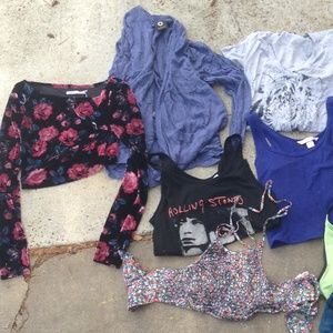 @graceannfontana the floral halter is from urban outfitters $16 obo. The navy blue/orange stripe is a crop $16 obo. Bundle for $25.
