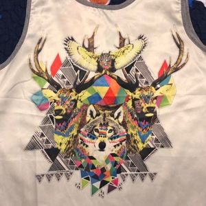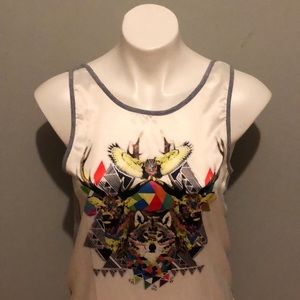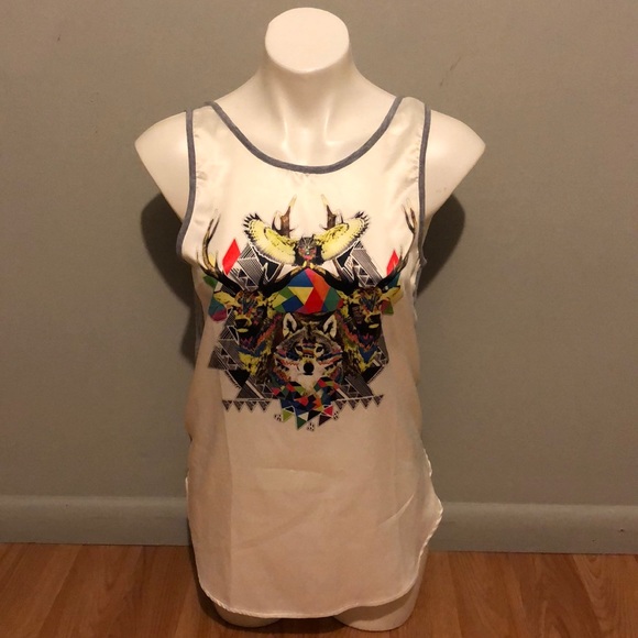 Very stylish tank top by Nameless in great condition as shown, except for a barely noticeable stretch as shown in last photo.