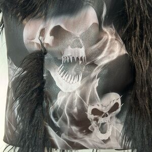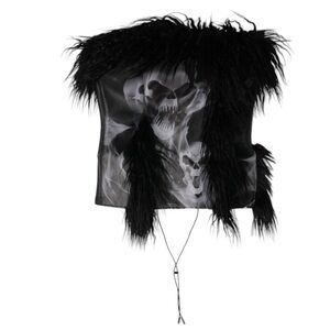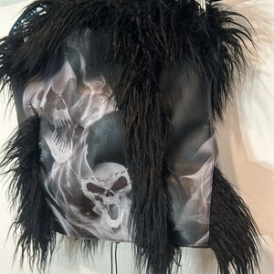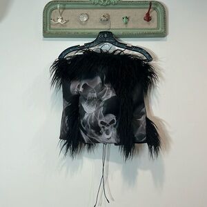 Theme rock ‘n’ roll, skulls, grunge, Alexander McQueen rockstar, glam Moto, Gothic goth, black fur queen of the night tube top strapless corset