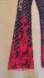 These pants feature a striking black and pink color combination with a dramatic flare that begins at the knee. The boot cut design offers a stylish silhouette, while the smooth fabric ensures comfort and ease of movement.