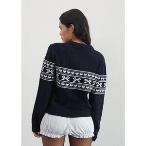 The Namirta sweater features an oversized fit with long sleeve in peacoat knit. Completed with a Fairisle bow design along front of jumper and sleeves in white.