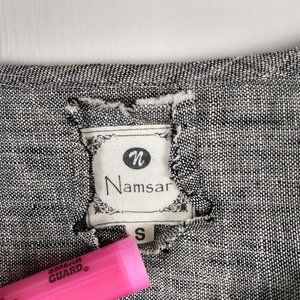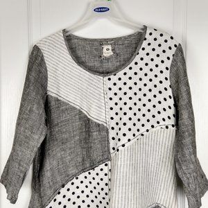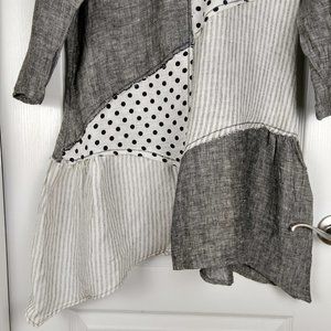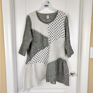 Namsar Womens Polka Dots Stripe 100% Linen Oversized Lagenlook Tunic Blouse