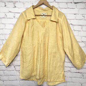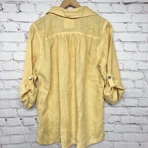 Namsar Yellow 100% Linen Breezy Roll Tab Feminine Girly Resort Blouse Sz L