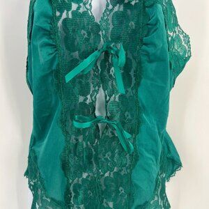 Nan Flower Women Size Large Emerald Green Vintage Lace Bow Bodysuit Lingerie