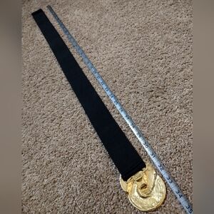 Enhance your outfit with this awesome Nan Lewis Elastic stretch belt belt featuring a striking gold buckle. Perfect for adding a touch of sophistication to any ensemble. This is Vintage from the 1980's, and in perfect condition. All questions welcome, measurements included in photos.