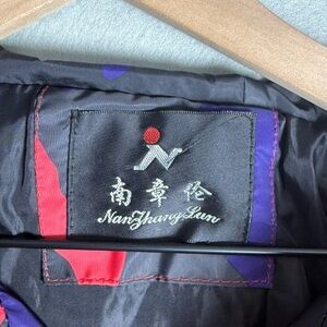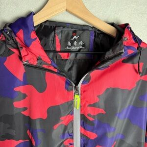 Nan Zhang Lun Red and Blue Camo Jacket with Hood Windbreaker Men's Size Large
