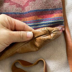 She upcycles Pendleton blankets and leather so there is some distressing on the cross-body bag. Nothing serious that impacts functionality. The strap is definitely worn - see pictures. The pouch has hardly been used.