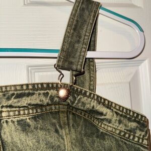 New with tags. Never worn. Did come with a few tiny marks on the overall strap part as seen in the photos. This isn't stretchy so a bigger size will not be able to fit into this. Adjustable straps. Flared/skater style. Seam detailing. Washed Green Olive. Has a back zipper. There are NO defects with the zipper. 75% rayon & 25% polyester. This is overall dress is hard to find, sells out really fast! ❌NO TRADES❌