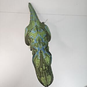 The Nanco Green T-Rex Dinosaur 11" Plush Stuffie Tyrannosaurus Rex is a medium-sized stuffed animal perfect for birthdays and suitable for a wide range of age levels from 6 months to 12 years. This retired plush toy features a colorful green design and is washable, making it both durable and easy to clean. With its realistic dinosaur design, this Nanco stuffed animal is sure to be a hit with children who love prehistoric creatures.
