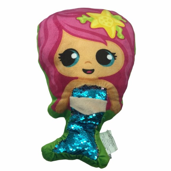 Mermaid plush doll pillow blue sequins stuffed