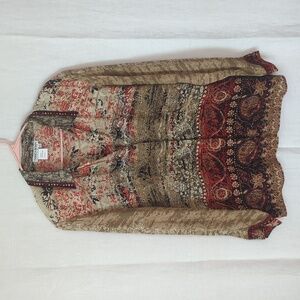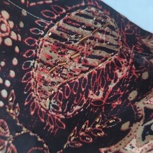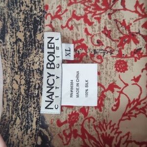 Nancy Bolen City Girl Deadstock Silk Button Up Stencil Art Beaded Size XL
