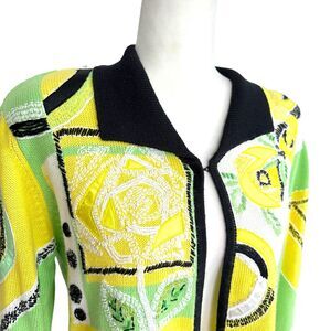 Nancy Bolen City Girl Sweater Cardigan Petite Large PL Psychedelic Sequins Artsy
