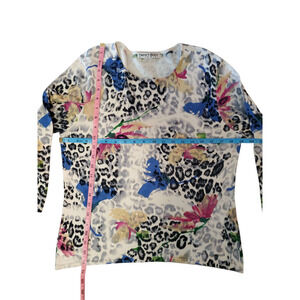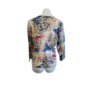 Nancy Bolen City Girl Top Med Y2K Leopard Floral Sequin Knit Beaded Sweater
