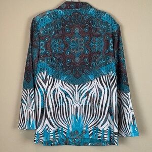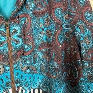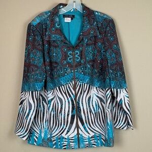 Nancy Bolen City Girl Vintage Turquoise/Brown/Off White Animal Print Jacket