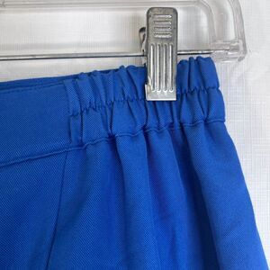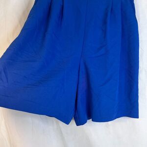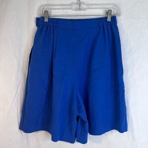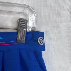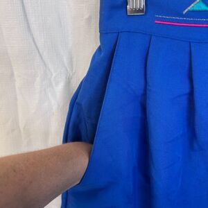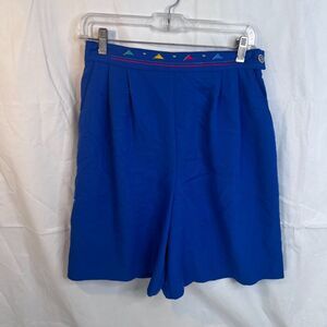 SHORTS: pleated front, high rise, wide leg, boxy, front pockets, side button, geometric patterned hem, stretchy side waistband