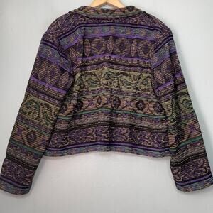 Nancy Bolen City Girl long sleeve purple, teal, tan, and black tapestry in Great pre-owned condition!