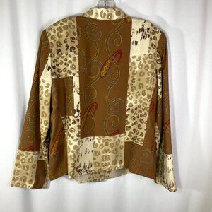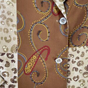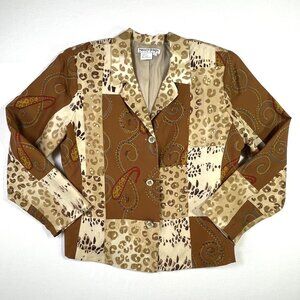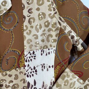 Nancy Bolen Silk Animal Print Beaded Jacket Size L Brown Tan Beaded Vintage