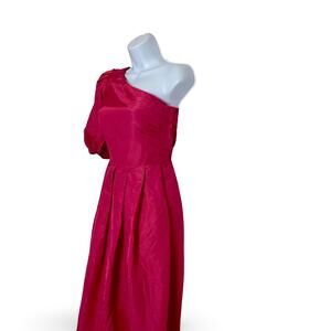 Raspberry pink one shoulder dress by Nancy Bracoloni in good preowned condition. No flaws.