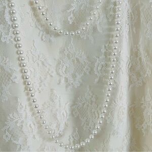 Nancy Bracoloni Vintage Women's Off White Mesh Midi Dress w/ Beaded Necklace Size 8. Previously loved, some signs of wear and stains as pictured. Underslip has some stains and holes.