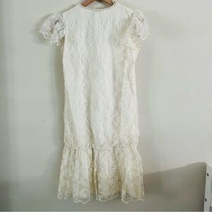 Nancy Bracoloni Vintage Women's Off White Mesh Dress w/ Beaded Necklace Size 8