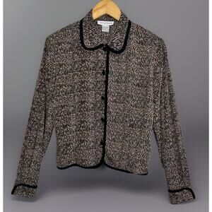 ✨ Nancy Crystal Leopard Print Blouse – Size 8 – Silky Retro Elegance