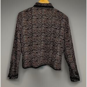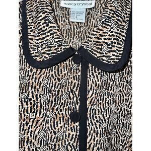Nancy Crystal Leopard Animal Print Cuffed Blouse Silky Polyester Glam Vtg - Sz 8