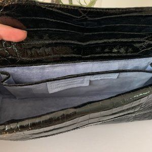 Nancy Gonzales crocodile clutch in black. Impeccable condition inside and out. No signs of wear. Large enough for small wallet, phone, keys, etc. Magnetic flap closure.