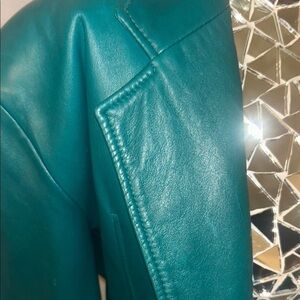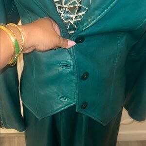 Step out in style with this elegant green leather women's pantsuit. Feels like lamb skin leather. Perfect for any occasion, this ensemble offers a sophisticated look with its rich color and tailored fit. Hard to find and rare. Especially as a set. Super stylish and looks brand new. Fits like a medium, says size 1.