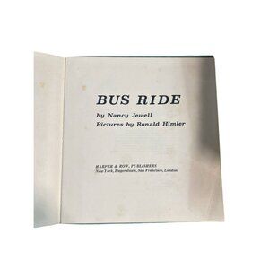 1st edition hard cover children's story Bus Ride by Nancy Jewell. Vintage book published in 1978. This story follows a young girl taking a bus by herself to visit her grandfather. She's nervous for the long trip and meets a nice woman on the bus that helps her through her anxieties all the way up until she reaches her grandfather. Item is in decent pre-owned vintage condition. There is a rip on the front cover, as well as some minor damage to the spine of the book. It's missing some of the paper pieces.