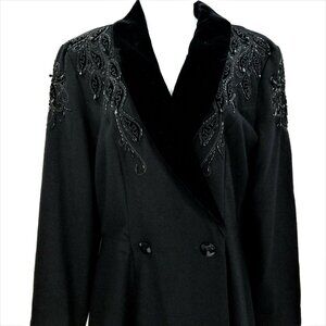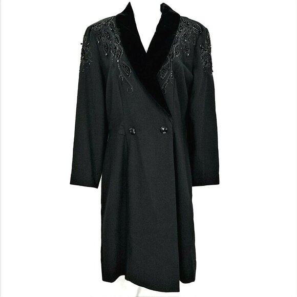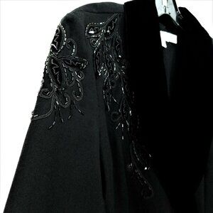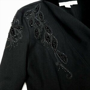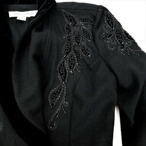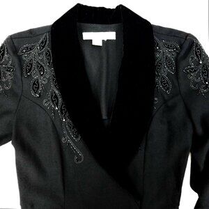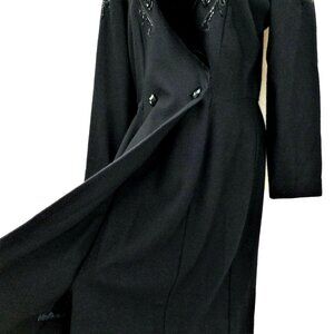 Nancy Johnson Vintage Black Wool Dress S M Velvet Collar Beaded Embellished Long