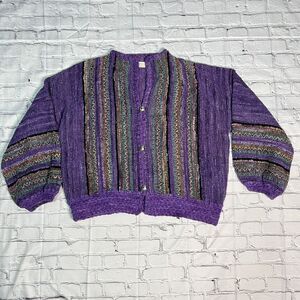 Nancy Lee Kaufman Cardigan One Size Oversized XL 2x Purple Striped Sweater