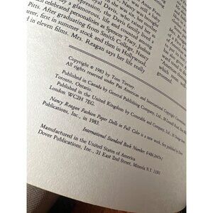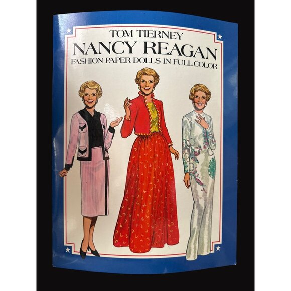 A collection of Nancy Reagan's iconic fashion styles in full-color paper dolls by Tom Tierney. Published in 1983 by Dover, offering 32 pages of elegant and historical fashion paper dolls showcasing the former First Lady's wardrobe.