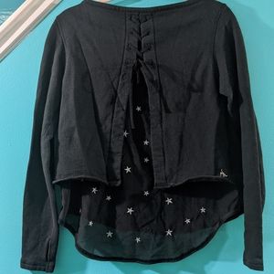 Excellent condition. Cool sweater with a hallway corset back and a thin layer of star patterned fabric. Very cute and chic. One of kind!