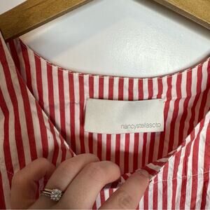 Nancy Stella Soto Red & White Striped 100% Cotton Boxy Top Size Medium