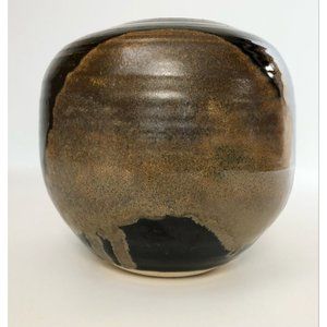 Nancy Valk Studio Pottery Vase Round Brown Vintage Signed Glazed Stoneware