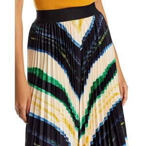 Nancy Yang Women Abstract Print Cotton Elegant Pleated A-Line Midi Skirt Size XL