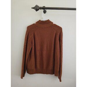 Nancy Yang Womens XL Cable Knit Cardigan Sweater Funnel Collar Cottagecore Brown