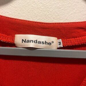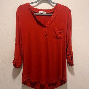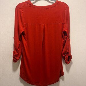 Nandashe Women's Split V-Neck 3/4 Roll-Up Sleeve Red Size Medium