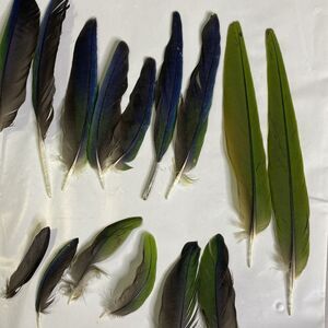 24 piece (pictured) mixed Nanday Conure parrot feathers. Naturally molted. Single bird. Blue, green, black. 6” and smaller.