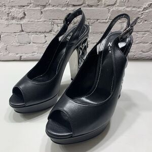Nando Muzi Women’s Italian Leather Open Toe Jeweled Heels Pumps 36.5 Black