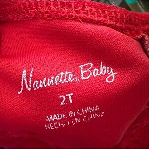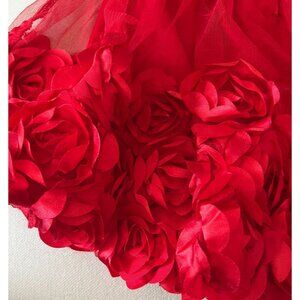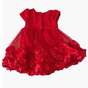 A charming Nanette Baby Red Floral Roses Dress for toddler girls in size 2T, embellished with rhinestones. In good used condition with no known flaws, from a smoke-free home.