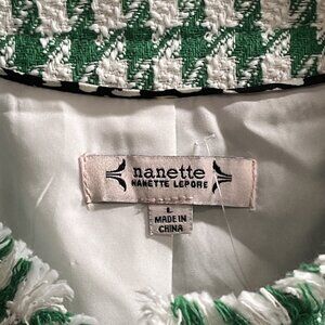Nanette Lapore Blazer Women L Kelly Green Houndstooth Tweed Fringe Jacket Office