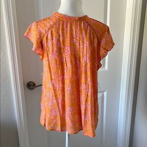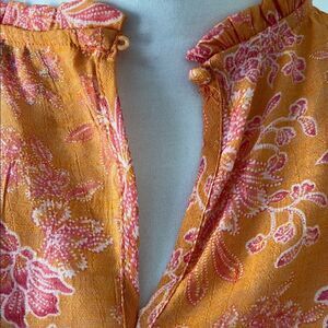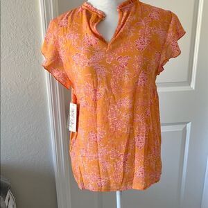 Brighten your wardrobe with this vibrant orange floral top. Perfect for any casual outing.