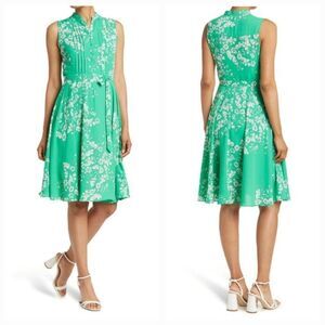 🔸️Nanette Lapore Green Lyst Floral Print Pintuck Sleeveless Dress Size 10