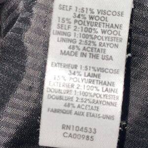 Sleeves and back: 51% viscose, 34% wool, 15% polyurethane body;