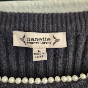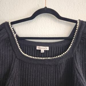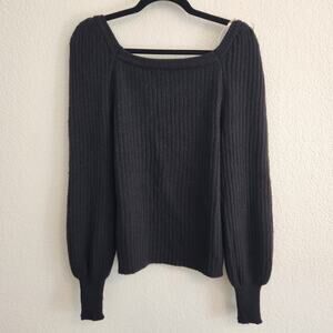 This new without tags size Large Nanette Lapore square pearl neck long sleeve sweater is perfect to wear for a night at the movies or fun event! This soft sweater has a unique neck line, puff sleeves and a classic black texture.