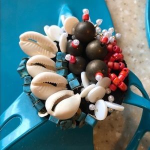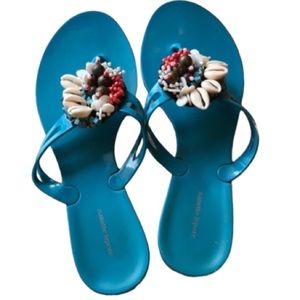 Nanette Lapore size 10 blue jelly flip flops embellished with shells & beads