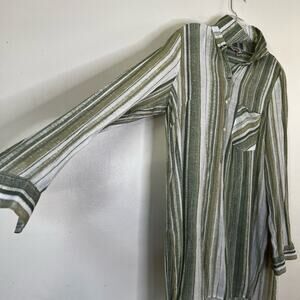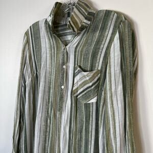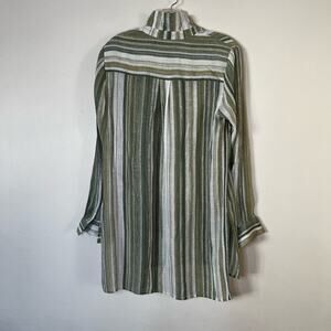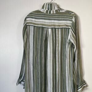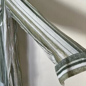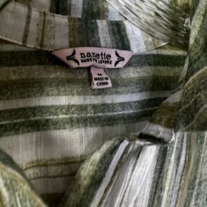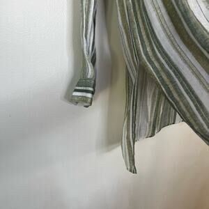 Nanette Lenore lightweight Sheer High Low Blouse Green Vertical Stripes