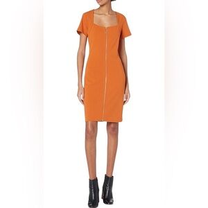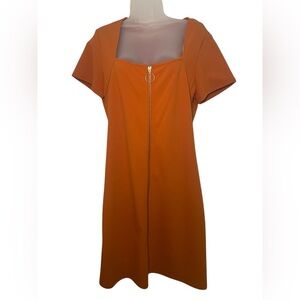 Nanette Leopore Orange Square Neck Zip Up Retro Mini Dress Size 10